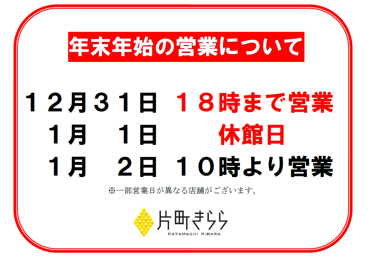 RECENT ENTRY最近のニュース もっと見る 【片町きらら】駐車サービスのご案内 片町きらら 2025/02/14UP お知らせ 「片町きらら広場」イベント情報 片町きらら 2024/03/25UP ニュース&イベント