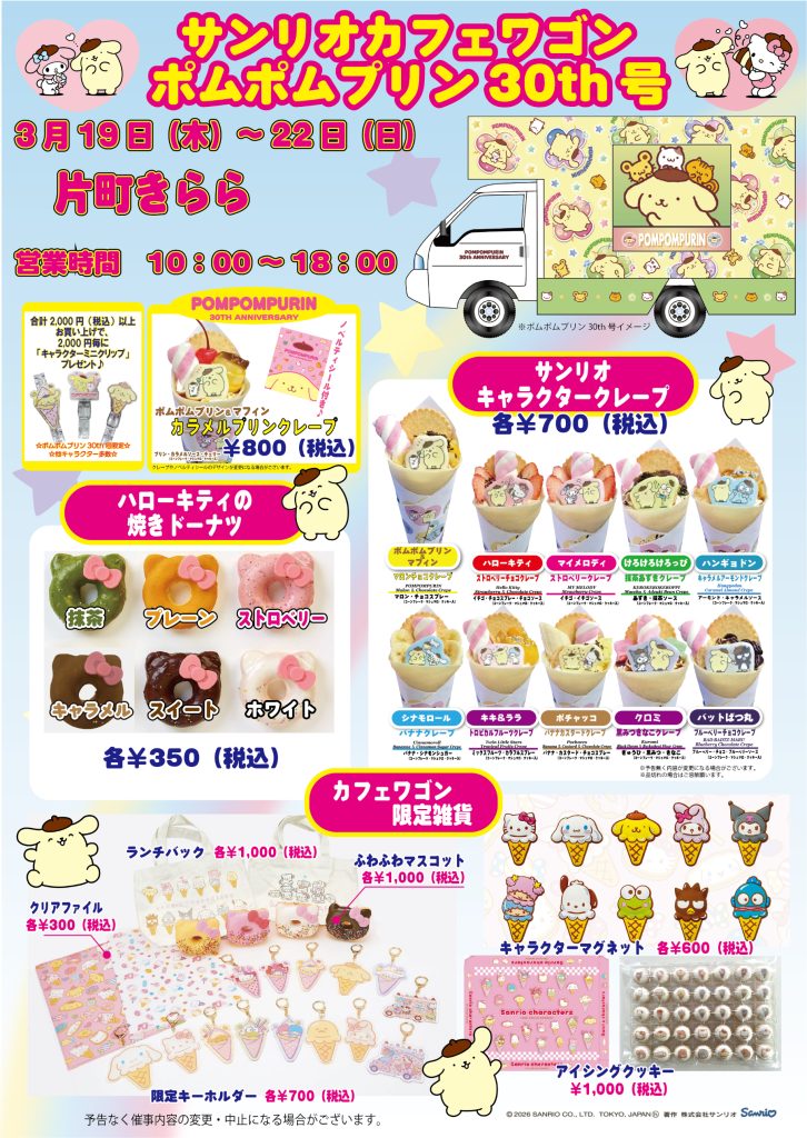 【予告】【3/19(木)~22(日)】「サンリオカフェワゴン ポムポムプリン30th号」がやってくる!