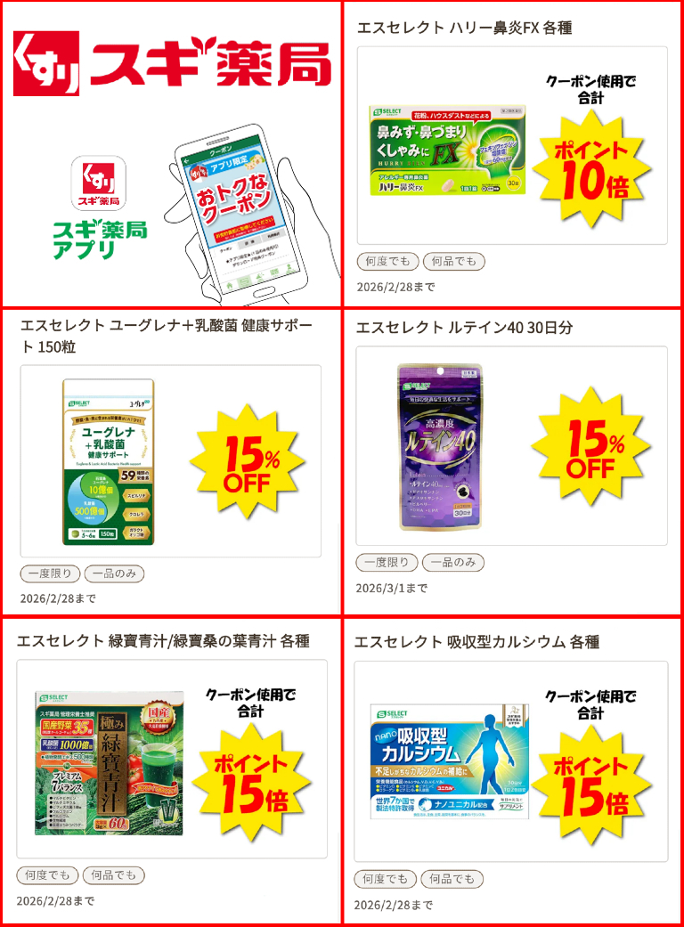 「スギ薬局 アプリ」おすすめクーポンのご紹介!
